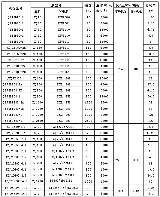 JZJ2B系列羅茨水(液)環(huán)真空機(jī)組技術(shù)指標(biāo):